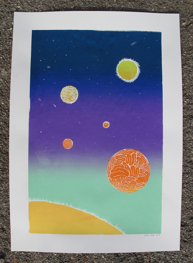 Série d’impressions aléatoires sur papier dans le cadre d’une résidence de création au sein de l’association Fructôse de Dunkerque.